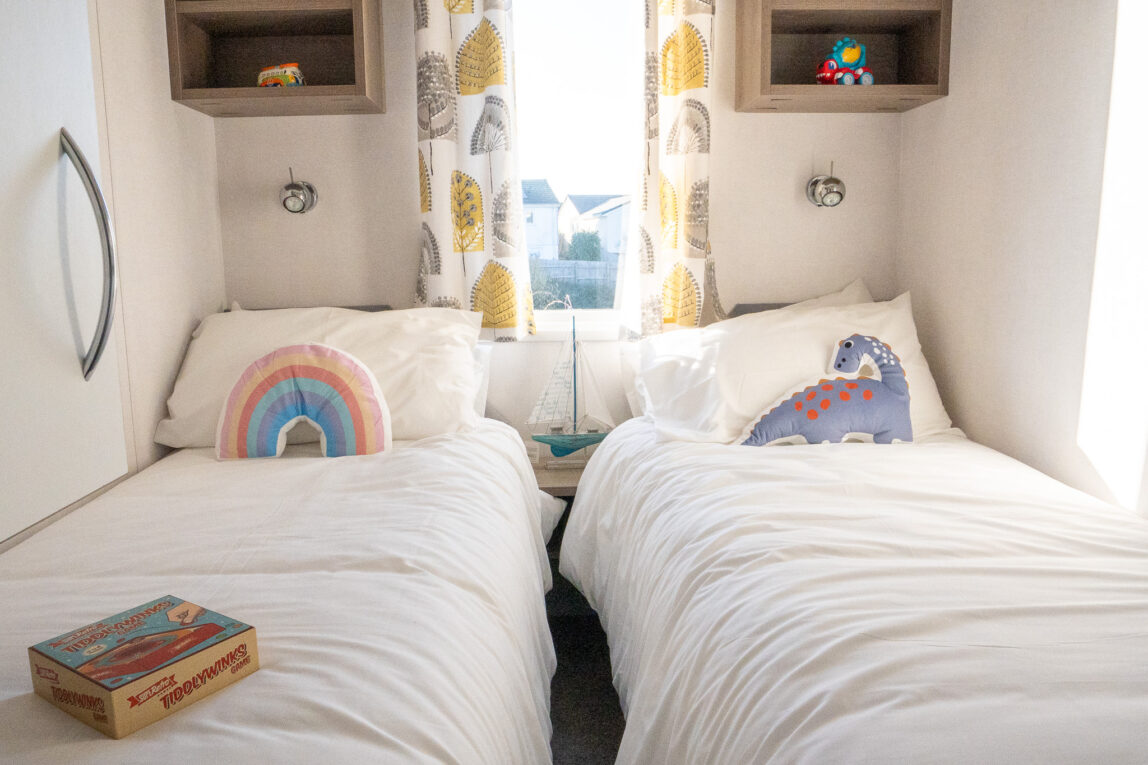The Atlas Amethyst offers well-proportioned bedrooms designed for both comfort and practicality. The twin bedroom provides flexible sleeping space, while the main bedroom benefits from built-in wardrobes and direct access to a clever Jack & Jill shower room, which also serves as an en-suite.