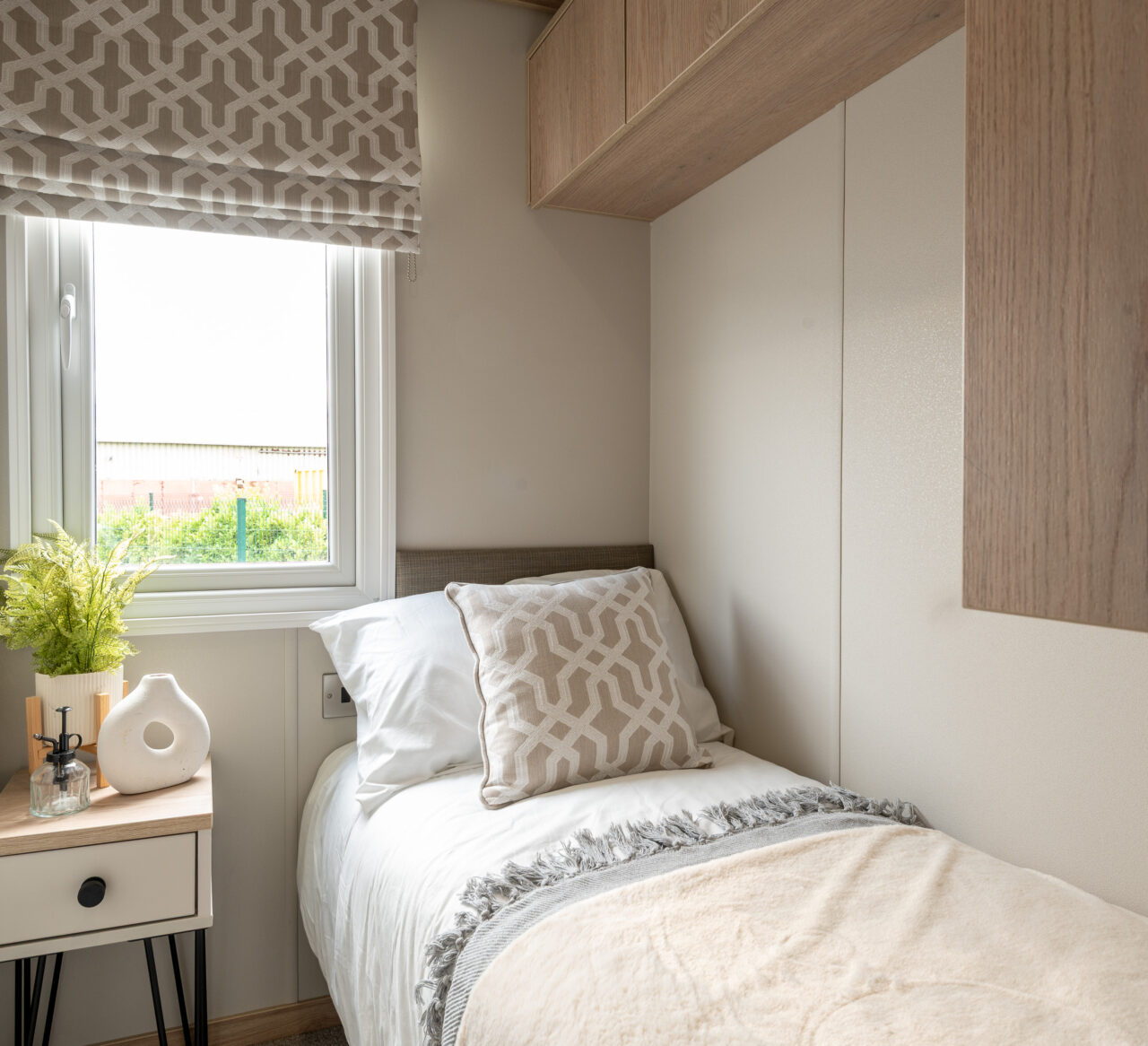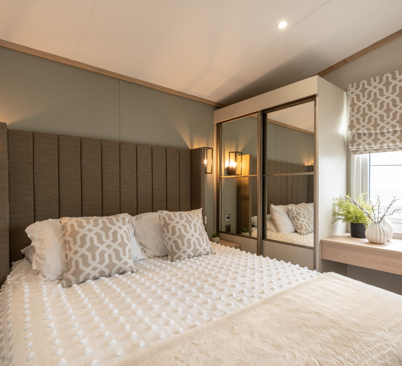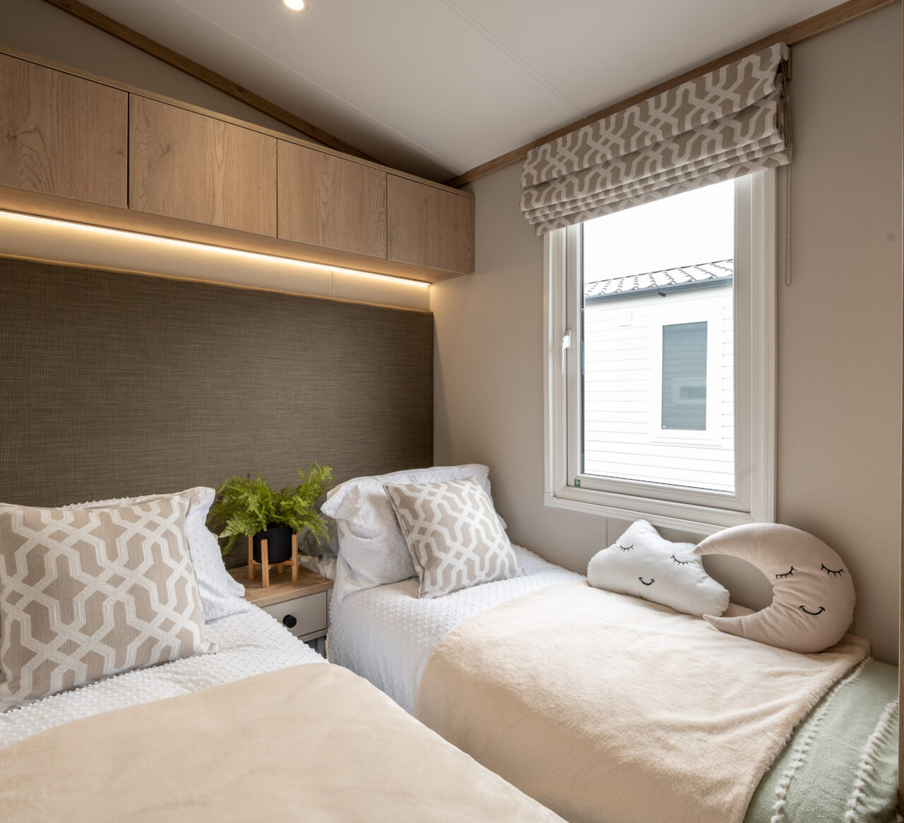 The bedrooms continue the calm, comfortable feel of the living space. The master bedroom offers generous storage and a peaceful place to unwind, while the twin room is perfect for children, grandchildren, or visiting guests. A modern family shower room completes the layout, finished with quality fittings for everyday comfort.