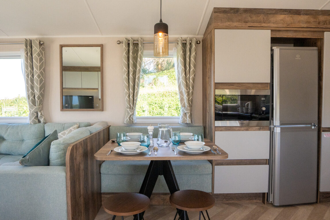 The Willerby Brookwood strikes a perfect balance between contemporary style and everyday comfort. Soft pastel tones, wood-effect flooring and modern drop lighting create a calm, inviting atmosphere throughout.